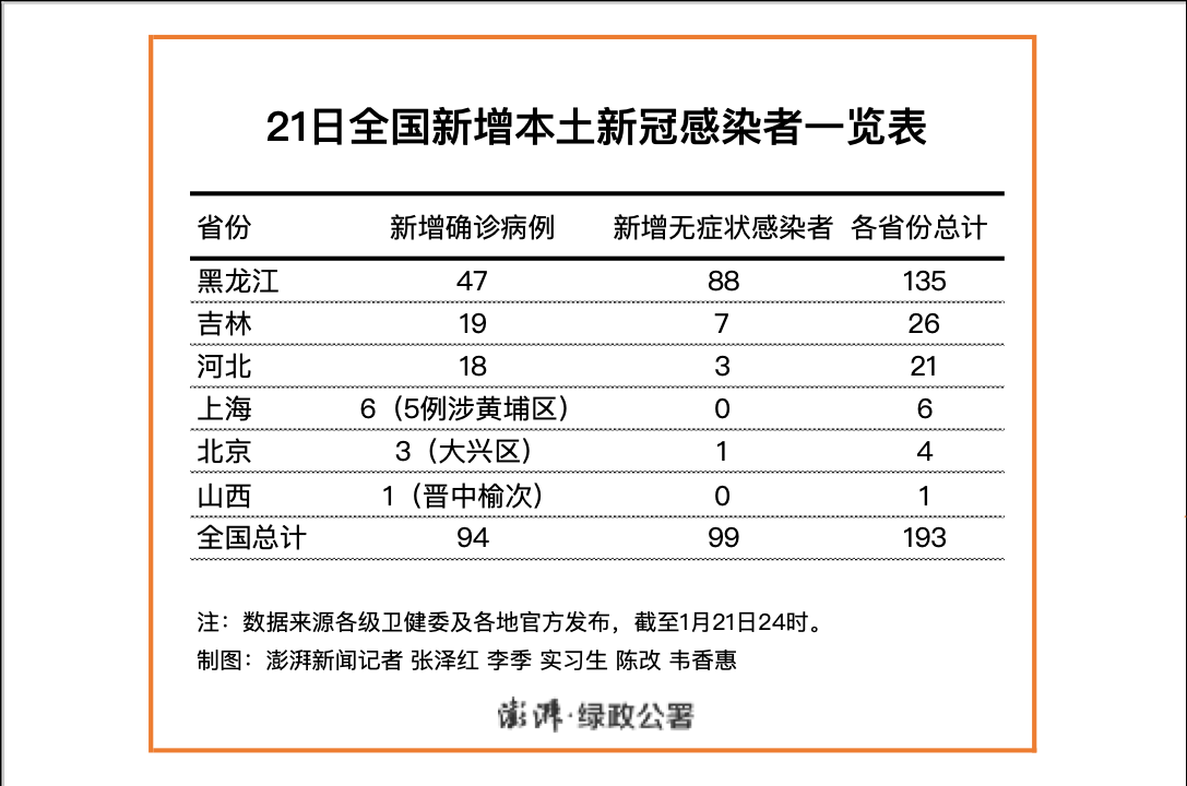 〖One〗月20日0-24时,31个省(自治区、直辖市)和新疆生产建设兵团报告新增本土确诊病例2830例,新增本土无症状感染者16552例,具体分布城市如下:本土确诊病例分布城市上海:2634例,含459例由无症状感染者转为确诊病例。吉林:95例,含32例由无症状感染者转为确诊病例。黑龙江:42例。江西:14例。